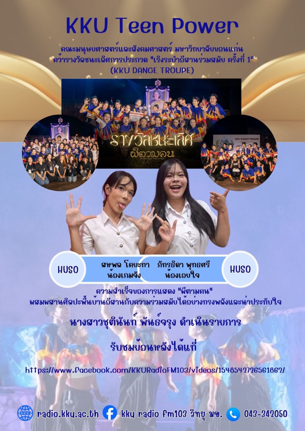 กิตติภณ ทุริวงษ์ 3 months ago 1 min read https://www.facebook.com/KKURadioFM103/videos/1548542726561862/ Post Views: 11 Continue Reading Previous ส่งสารดีเพื่อผู้พิการ ตอนที่ 18 เรื่อง คนพิการกว่า 2 4 ล้านคนไม่ได้รับสวัสดิการNext KKU Insight ตอน นิทานสาระท้องถิ่น