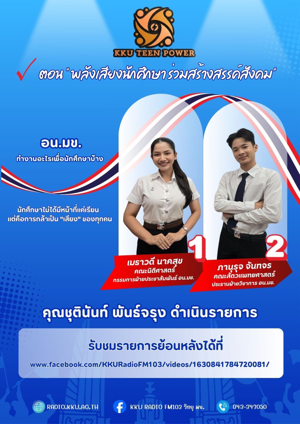กิตติภณ ทุริวงษ์ 5 วัน ago 1 min read www.facebook.com/KKURadioFM103/videos/1630841784720081/ Post Views: 2 Continue Reading Previous KKU Insight ตอน โรงงานแบตเตอรี่และพลังงานยุคใหม่ นวัตกรรมพลังงานไทย ทางเลือกสู้วิกฤตสงครามและความมั่นคงNext KKU Insight ตอน บุญเดือนห้า แห่พุทธบูชา สมมาอาวุโส